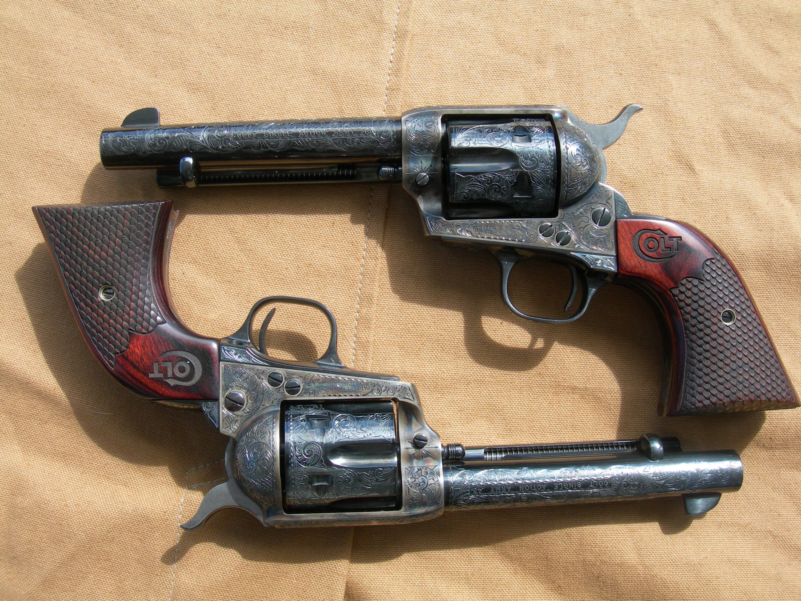 This is a Colt Bisley engraved in the style of Cuno Helfricht. At the customer’s request, this gun has been left gray. Once the client receives it, they can finish it however they choose! This revolver features ~75% American Scroll.